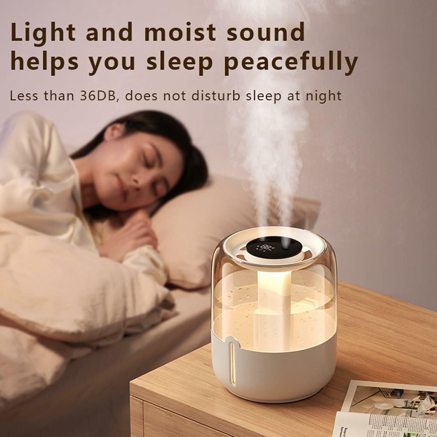 Dual head silent humidifier, bedroom special large spray air humidifier, essential oil aromatherapy machine, can support the watering style on the water, convenient and quick. With rapid humidification function, 4L large-capacity water tank can be continuously humidified for 10 hours, intermittent operation for 20 hours, small volcano humidifier can be switched to the left and right spray mode. At the same time with 36 dB light sound humidification, nano water mist. In the hot summer and dry winter, deep moisturizing, moisturizing, relieve dry discomfort, guarding the health of the family. High performance and high color value at an affordable price with no worries after sale