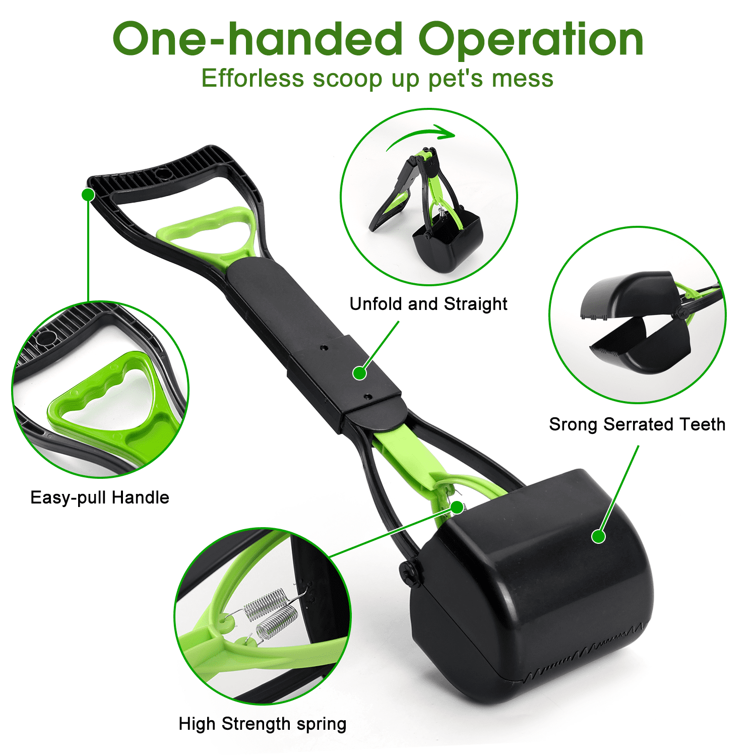Foldable Dog Pooper Scooper, 23" Long Handle, Leak-Proof & Compact Pet Waste Picker, Plastic, Green – For Large & Small Dogs, Grass or Yard Use