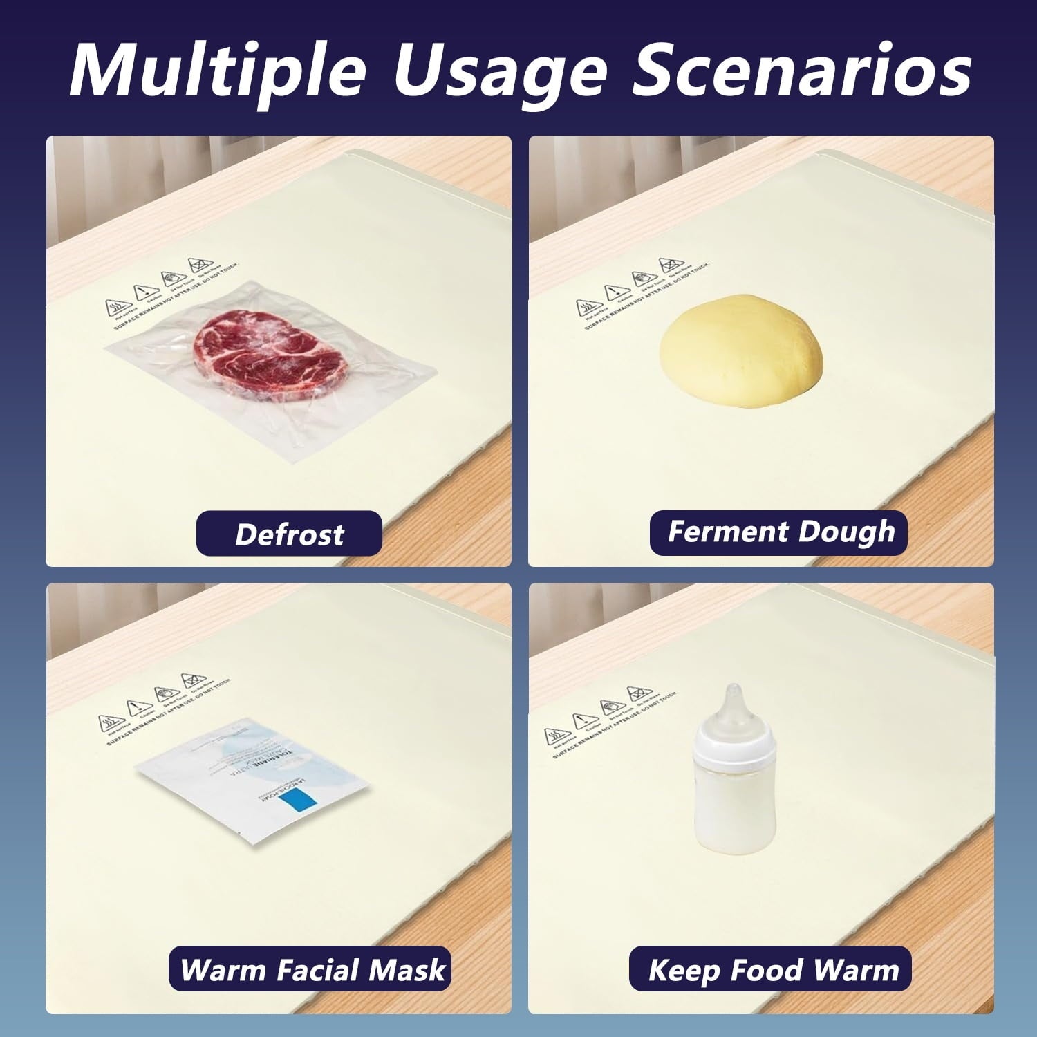 Made from food-grade silicone, this odor-free, waterproof, and heat-resistant warming mat ensures long-term durability. Simply wipe clean with a damp cloth for effortless maintenance.
