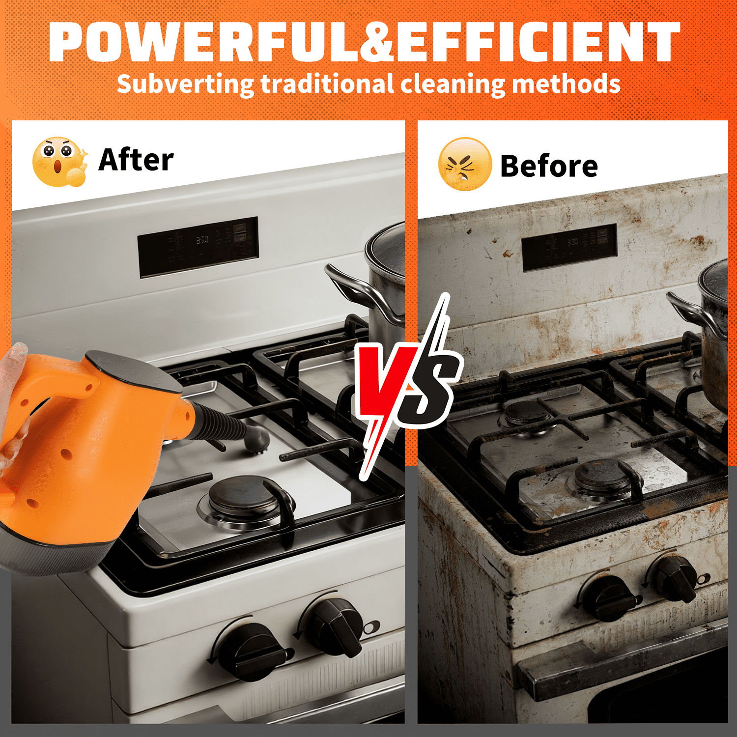 This 1200W handheld steam cleaner heats up in just 20 seconds, delivering powerful 230°F steam to blast away dirt, stains, and grease instantly. No more waiting—start cleaning in seconds!