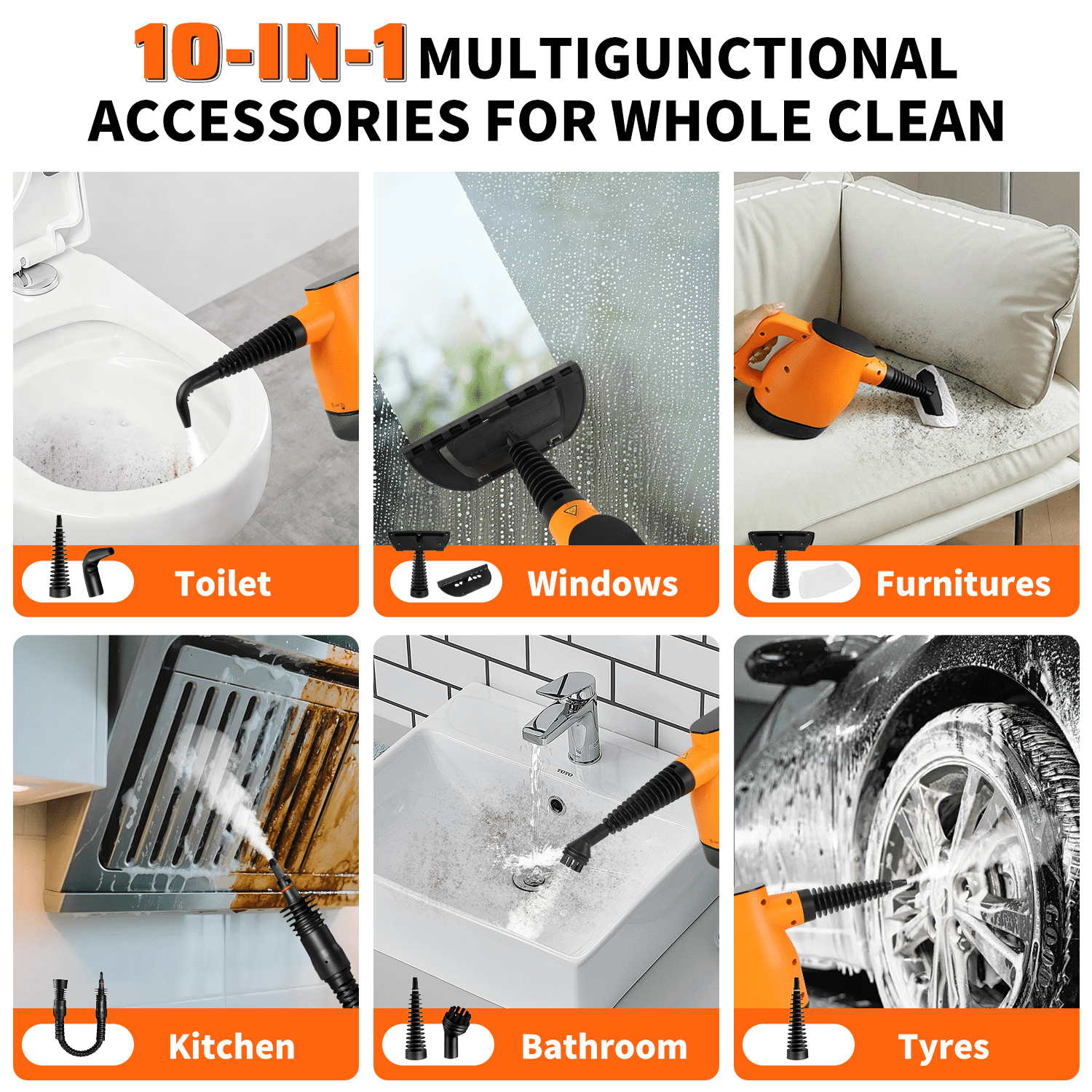 Handheld Steam Cleaner, 10 in 1 Steamer Cleaning& Safety Lock, Multi-Surface & Powerful Home Use for Cleaning, Car, Bathroom, Shower, Window, Grime, Grease