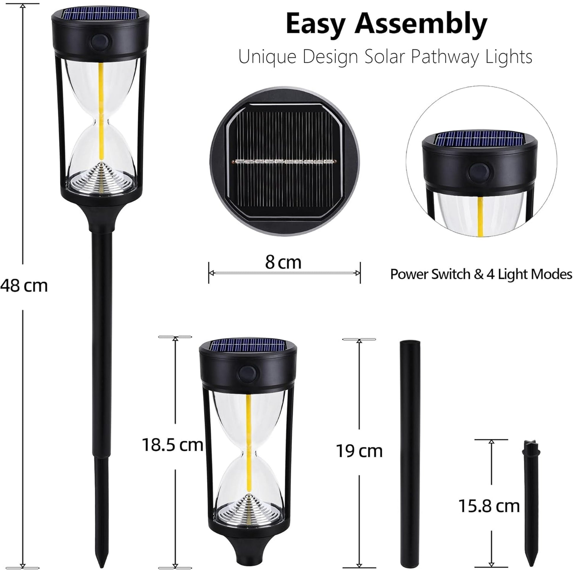 Kidsjoy 4 Pack Solar Pathway Lights Outdoor, Hourglass Design Solar Lights Waterproof, Auto On/Off Warm LED Garden Lights for Walkway, Yard, Patio, Lawn Decor