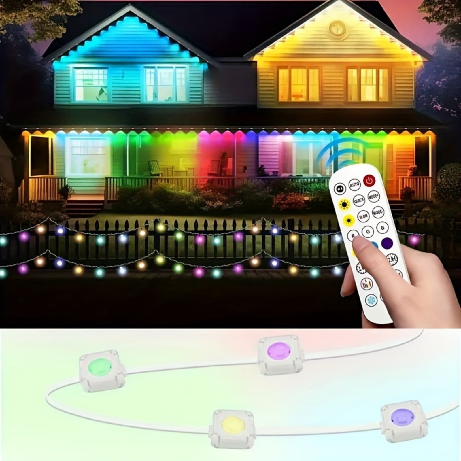 Wide coverage, worry-free waterproof: A single light string up to 200 feet (about 60 meters) can easily decorate eaves, fences, large trees or large garden landscapes. Professional IP67 waterproof design, sealed and dustproof, effectively resist rain, snow, and splashes, ensuring safe and stable operation in harsh outdoor environments, and durable.