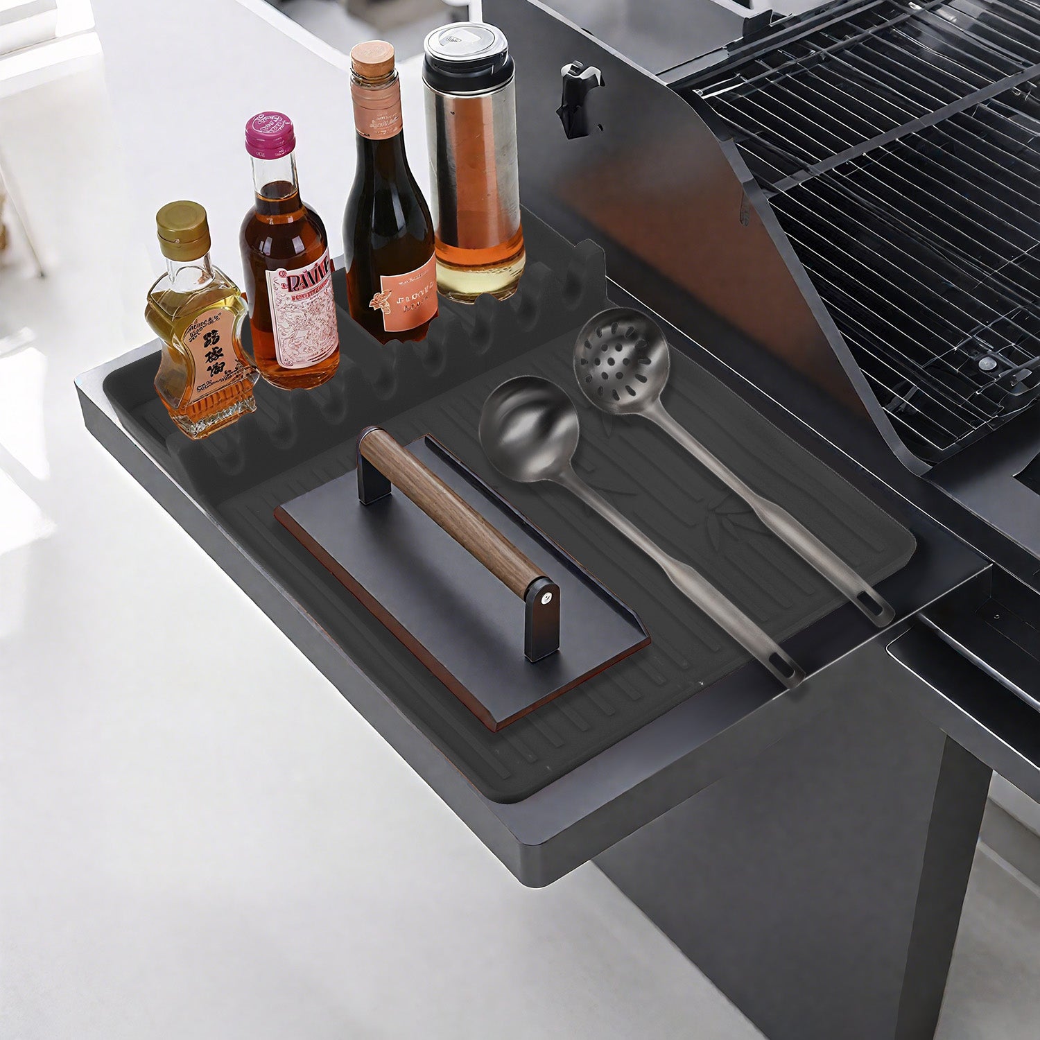 - 🔥 【Large Size 16.4x11.8" Silicone Spatula Mat】 Your ultimate grilling companion! Use it as a grill BBQ caddy seasoning jars holder or to keep multiple utensils like ladles and spoons organized on your barbecue grill side shelf. Keep your kitchen, cooking area, and countertop clean and tidy effortlessly.
