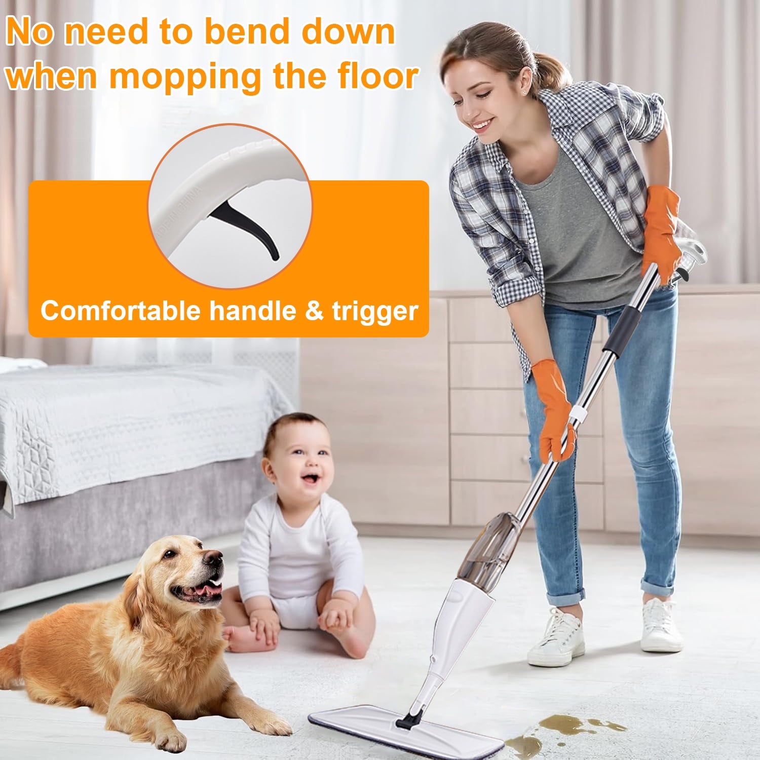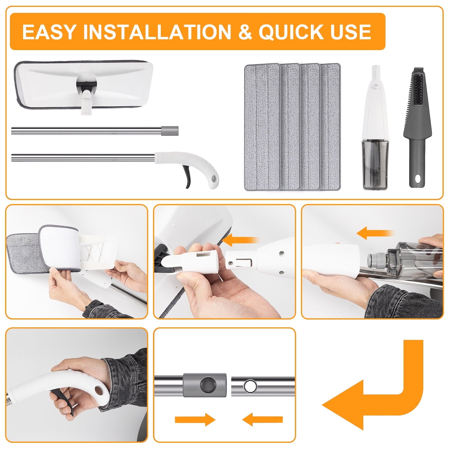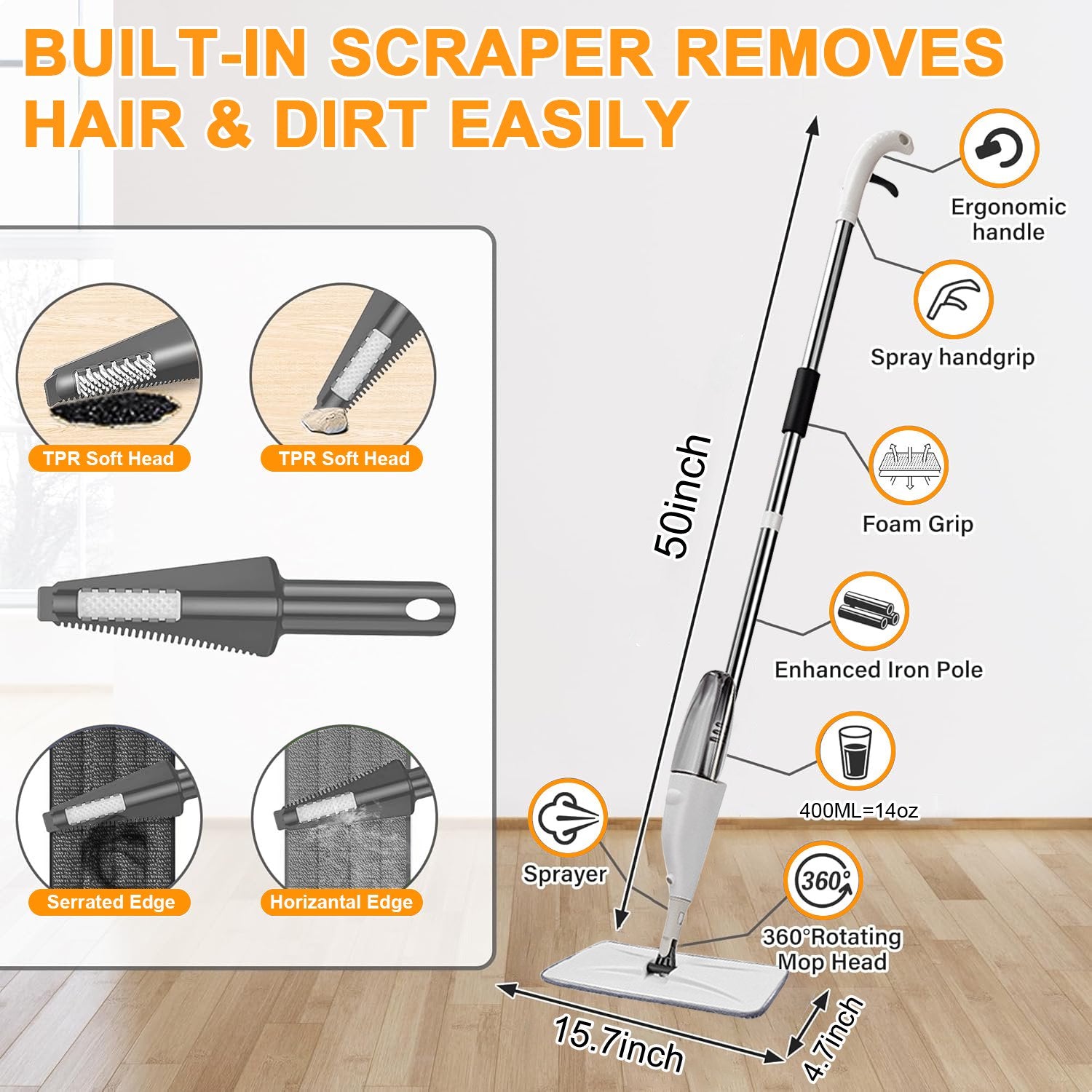 With 4 reusable microfiber pads, it traps dust, hair, and fine particles effectively, leaving your floors dry and streak-free—ideal for homes with kids or pets. The 50-inch aluminum handle lets you reach under furniture with ease, while the included scraper removes tangled hair and tough dirt.