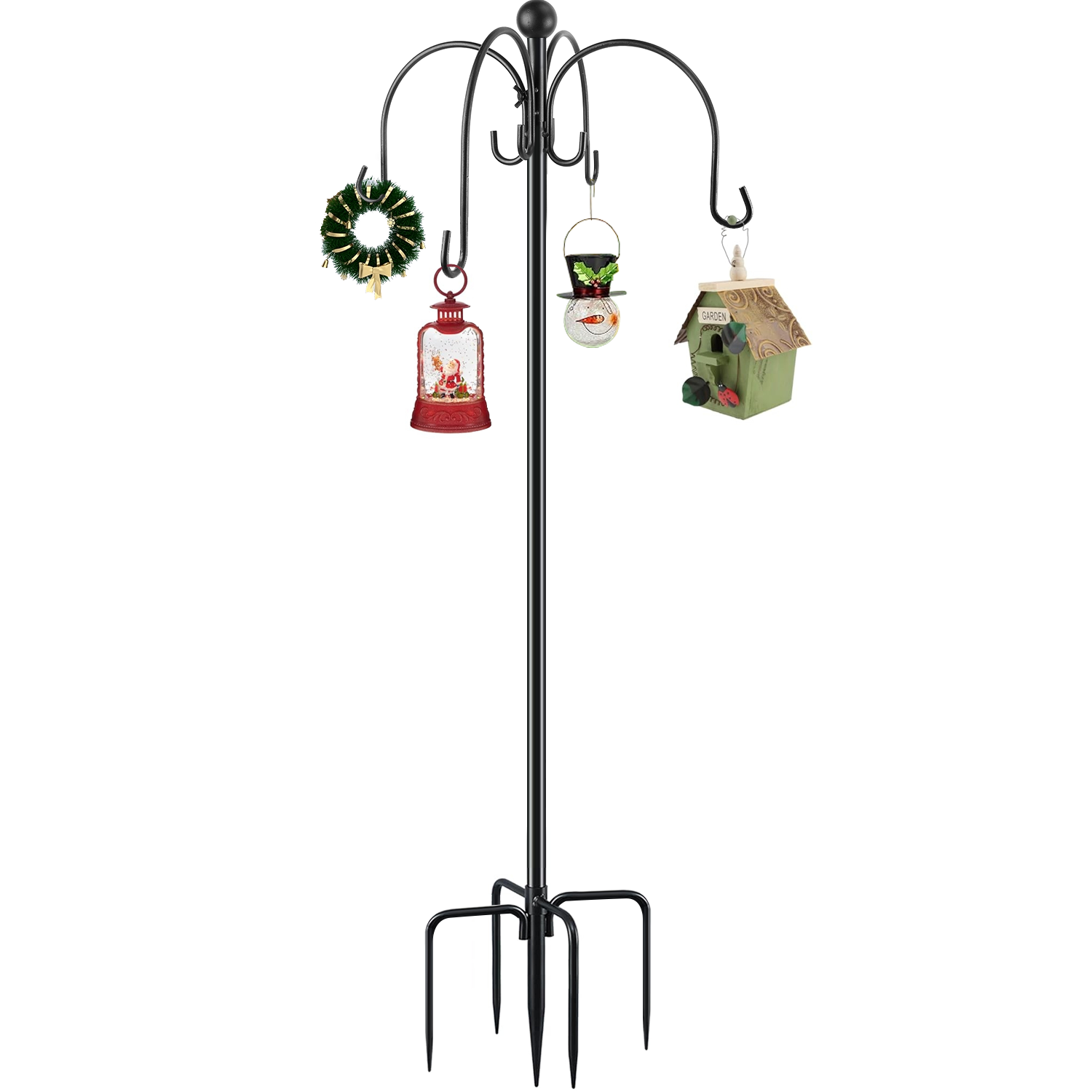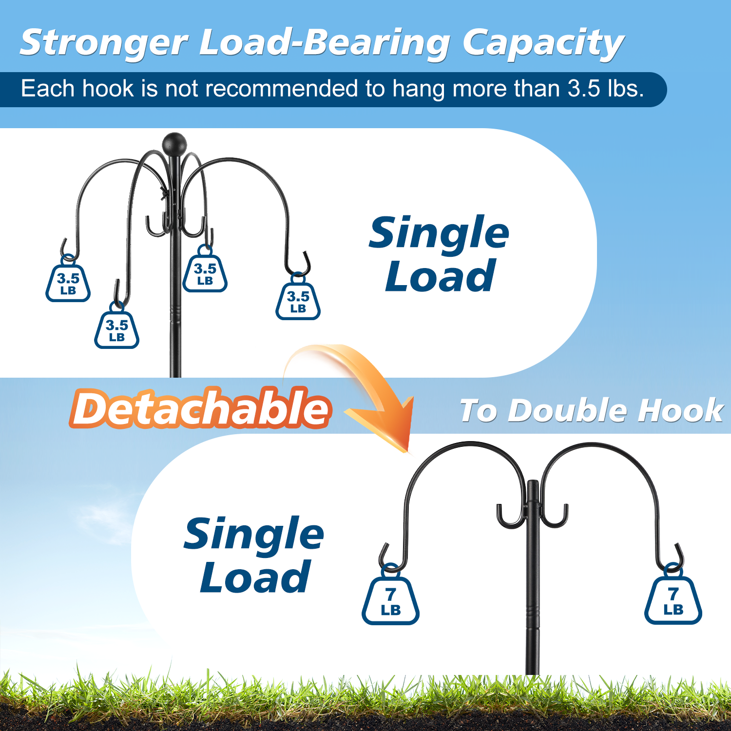 Teblint 88" Heavy Duty Shepherds Hooks for Outdoor, 4-Hook Adjustable Bird Feeder Pole with Reinforced 5-Prong Base, Garden Hanger Stand for Bird Feeders, Hanging Plants, Solar Lights & Lanterns