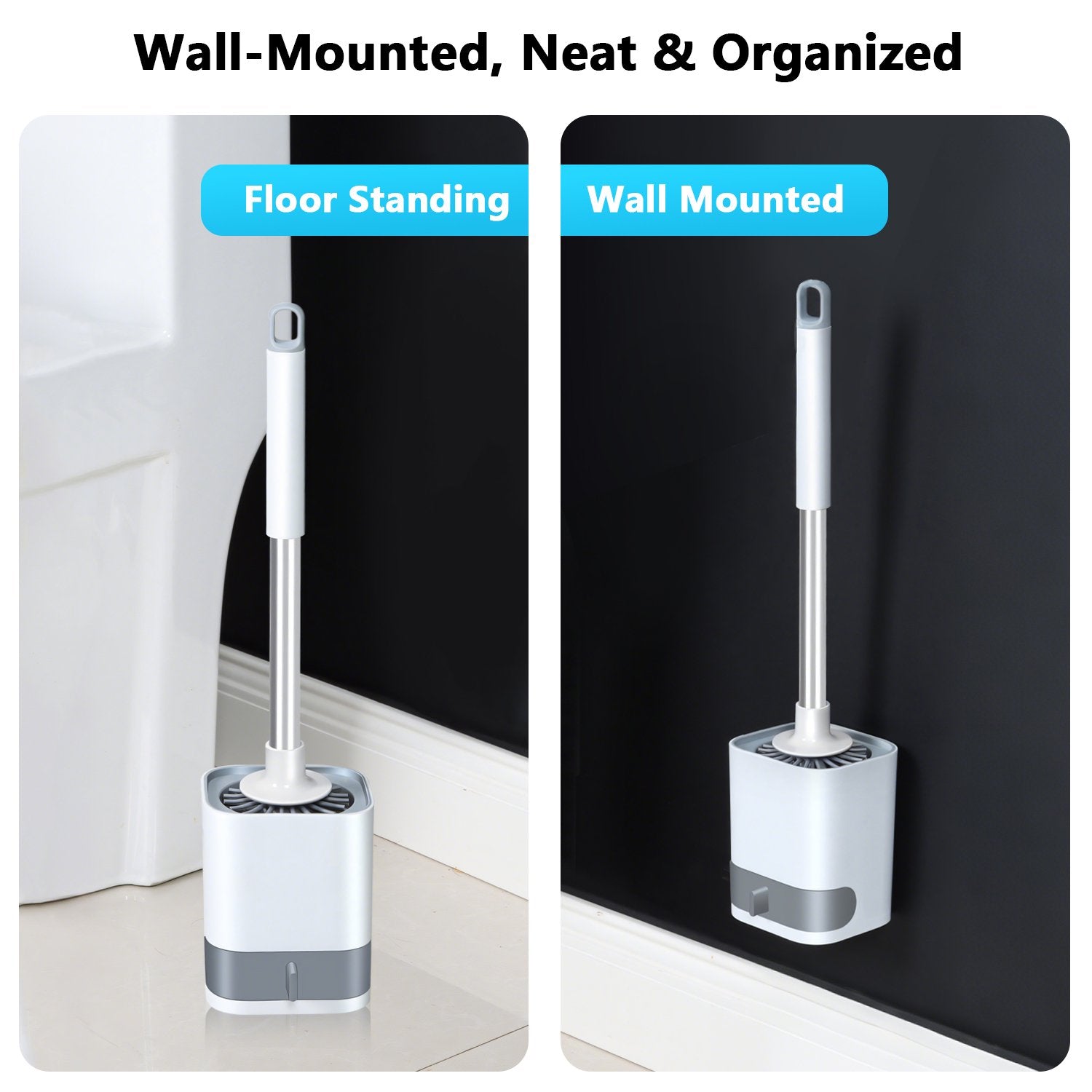 Toilet Brush with Wall Mount and Water Drawer – Long Handle Silicone Cleaner for Quick Dry Bathroom Cleaning
